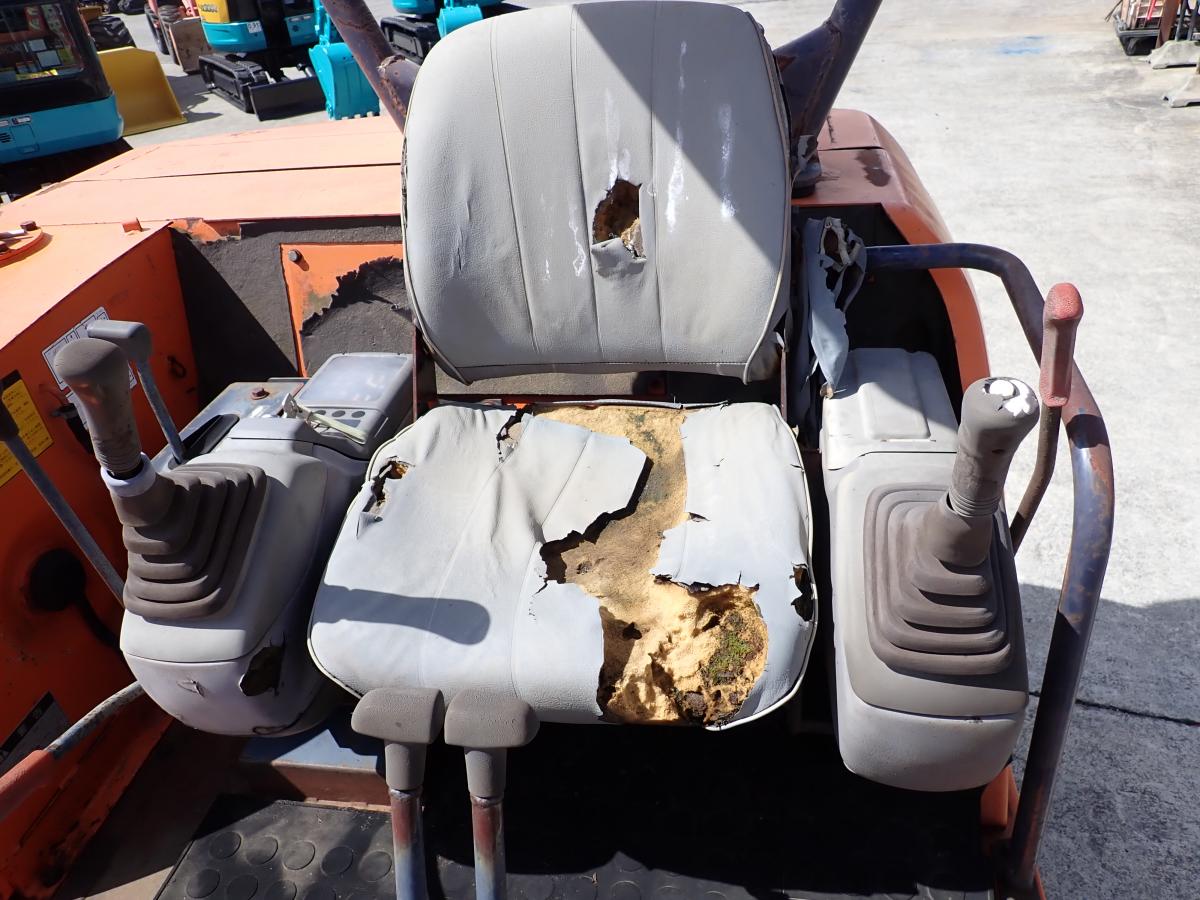 運転席シート破れ・ブームシリンダーシール交換が必要・ゴムクローラー減り・ブレード凹みあり
