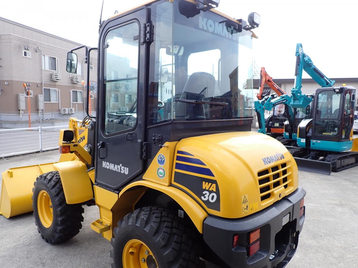 稼働時間も少なく、なかなか出てこない程度の良いコマツWA30-6EOです。室内も綺麗で動きもスムース、稼働するに全く問題ありません。小型特殊なので、車検制度もなく、ナンバープレートは役所で取得でき、冬用タイヤを履いてますので、除雪作業にもお勧めです。