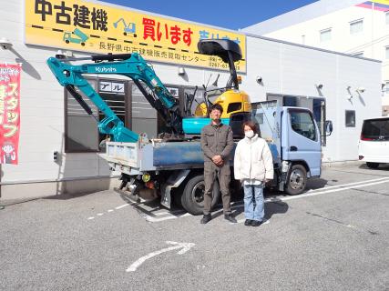 拝啓、昨年は本当にありがとうございました。何年も前からバックホーを探しておりました。主人はコマツのPC20と決めていましたので、なかなか見つからず、私もスコップを持ち手伝っていました。ネットで、サンワさんの会社が開けてPC20があるではないですか、すぐに長野に走りました。