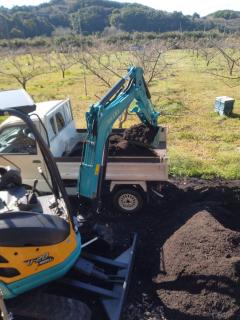 今、堆肥の積み込みにバックホー活躍してます。いつもの仕事がとても捗ります。